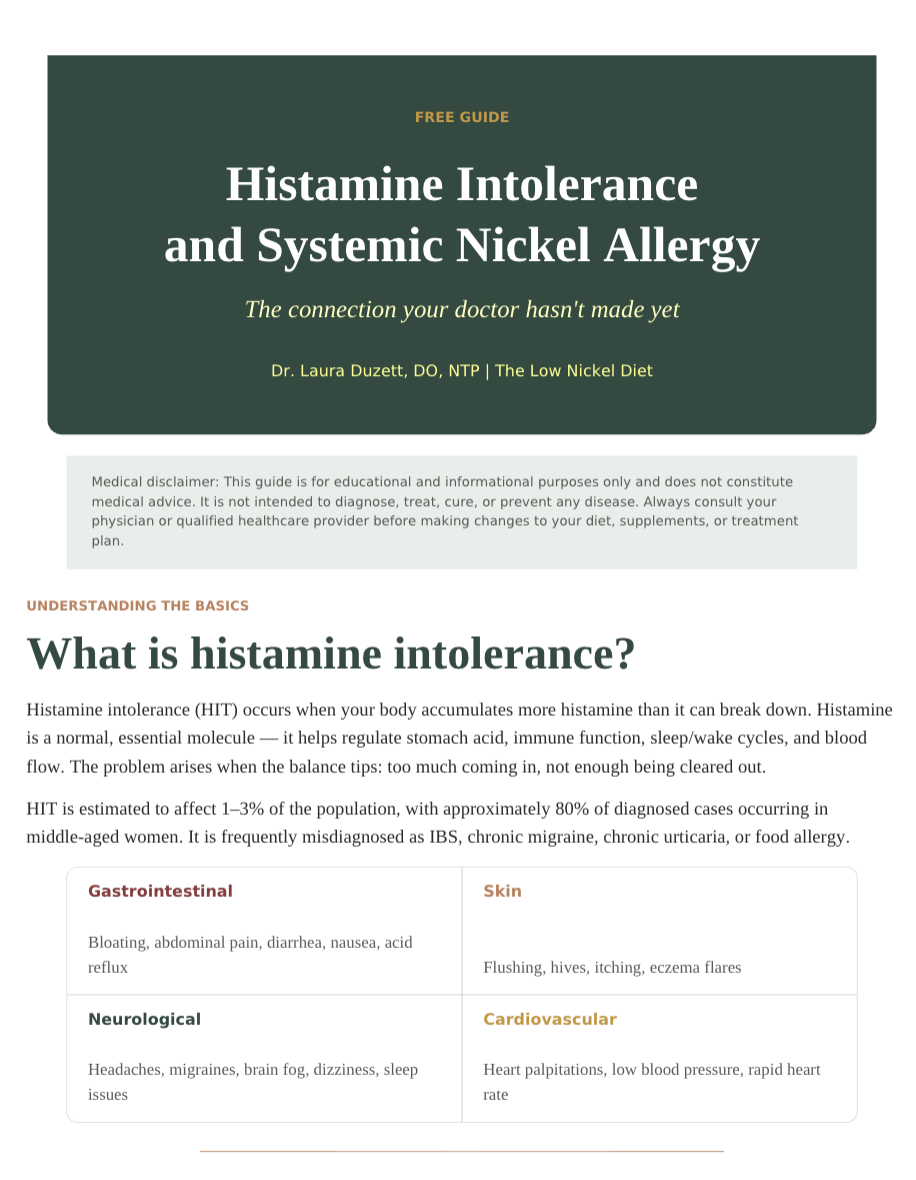 The Nickel-Histamine Connection: Why a Low-Histamine Diet Only Gets You 60% Better