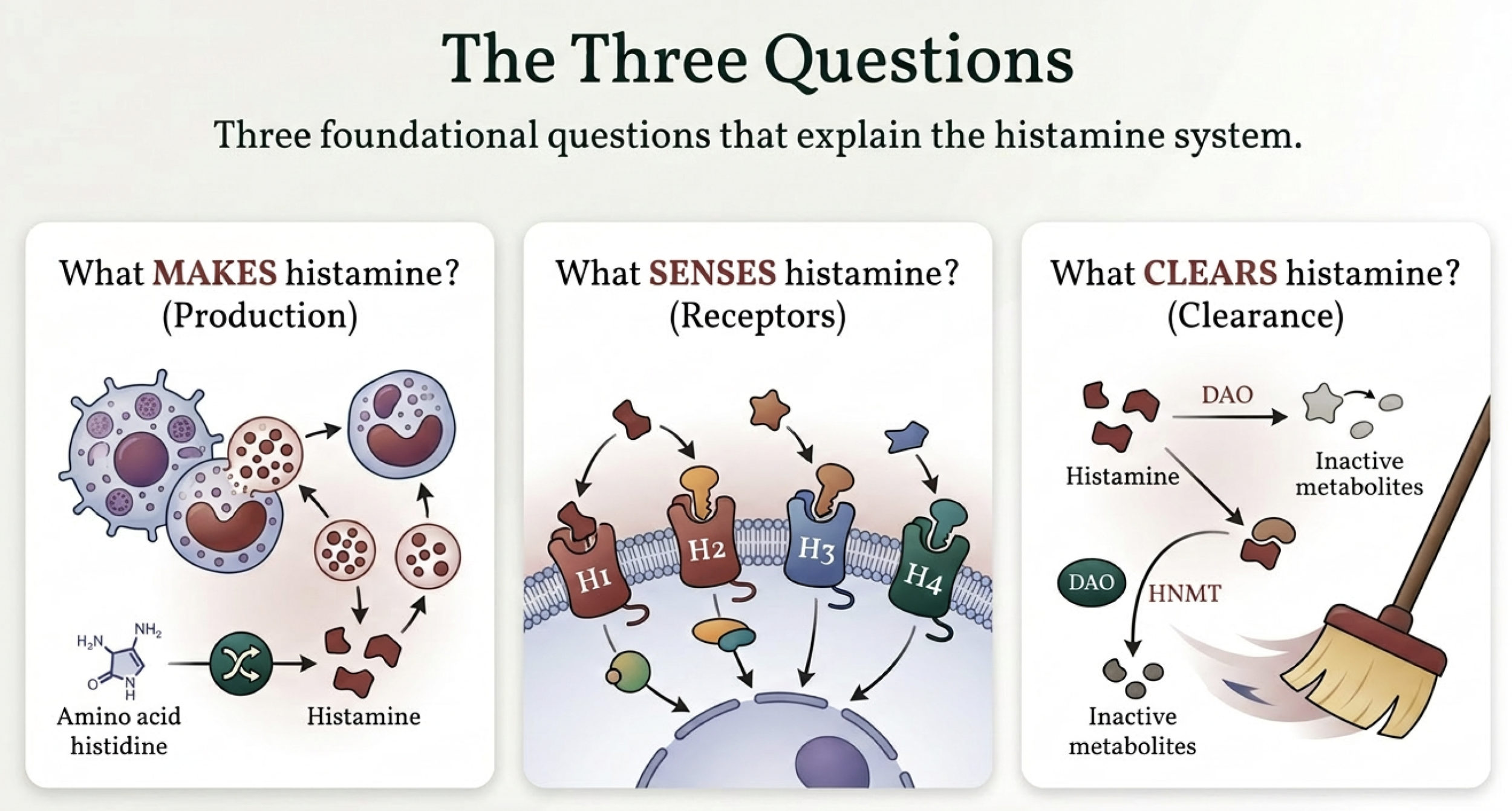 Every aspect of histamine intolerance comes down to three questions: What makes histamine? What senses it? And what clears it?