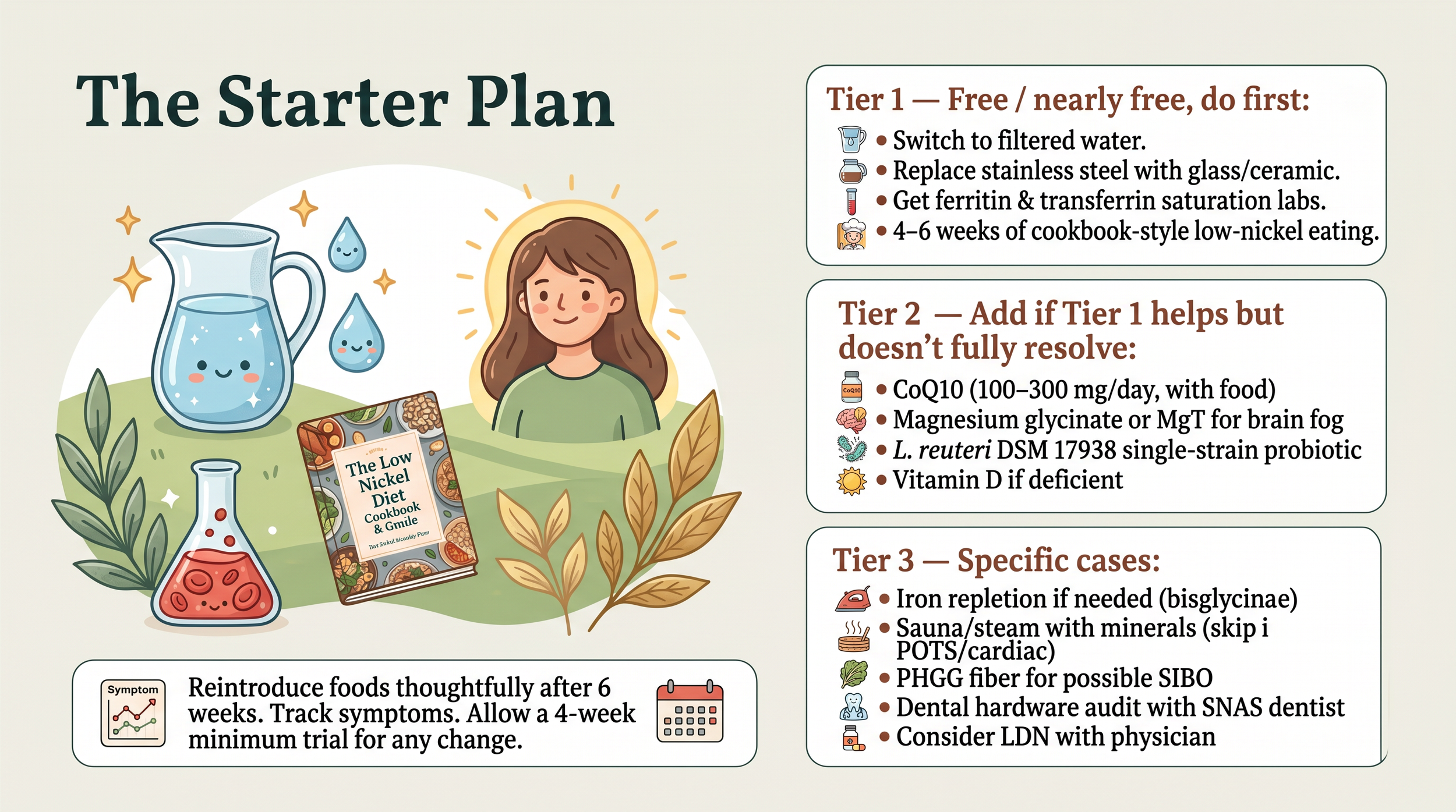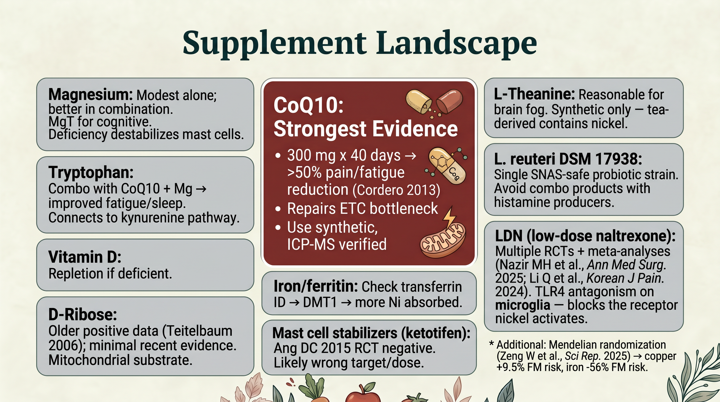 Get the free Fibromyalgia & SNAS Starter Guide in my community or message me here on the site — It includes the decision framework, three-tier starter plan, key references for your doctor, and a supplement brand guide with the lowest-nickel options for CoQ10, magnesium, L-theanine, and more.
