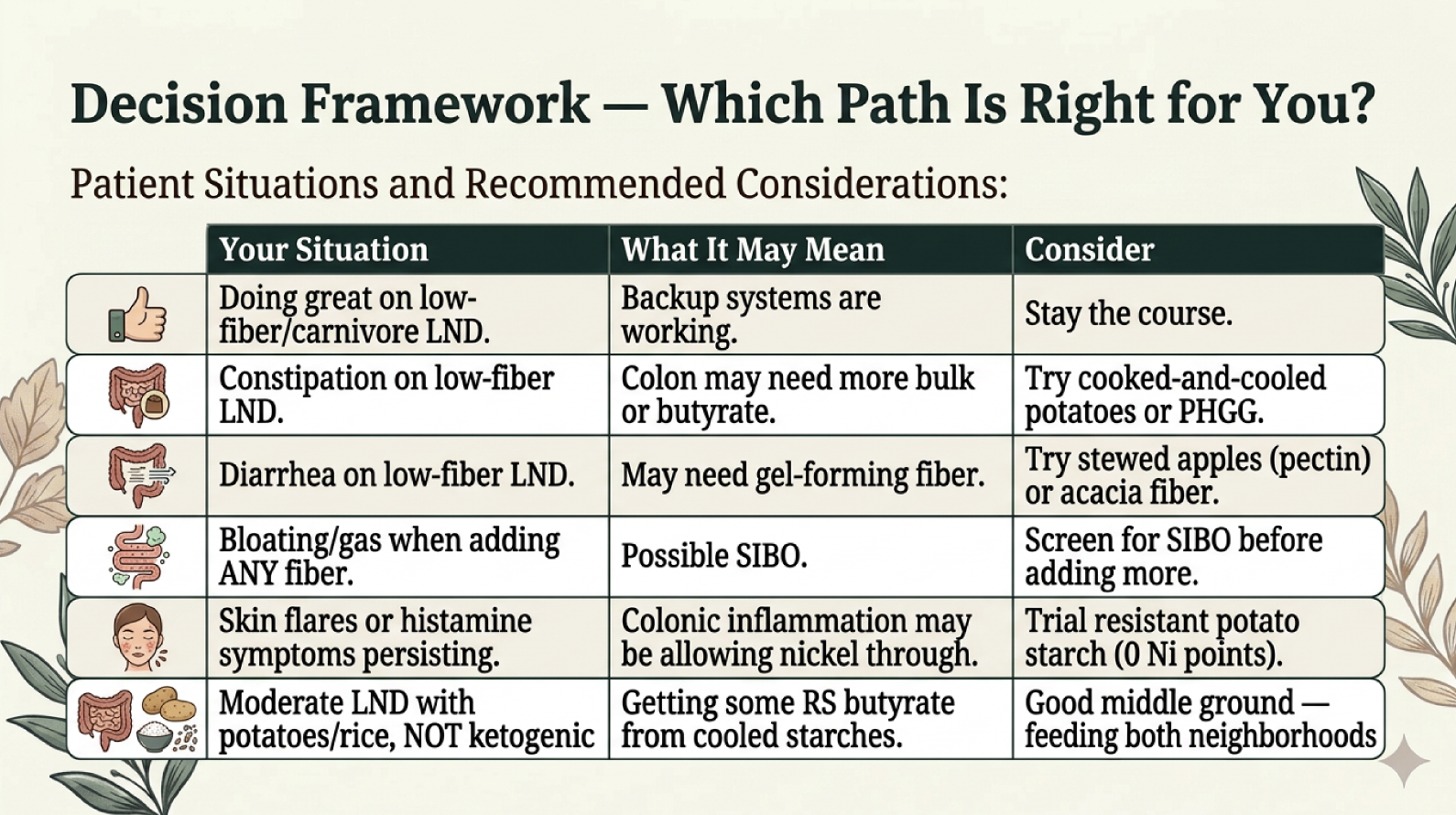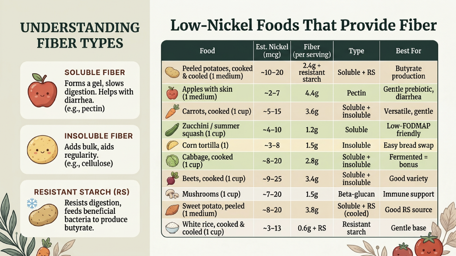 If you're thriving without fiber, you don't need to panic. If you're struggling, there are safe, low-nickel options to try — one at a time, starting slow.