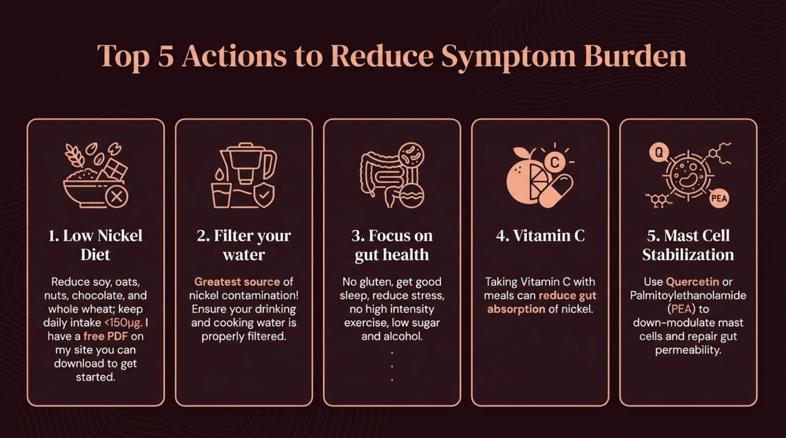 This is why addressing gut permeability is foundational for patients with both conditions — and why a low nickel diet alone, without gut repair, sometimes isn't enough.