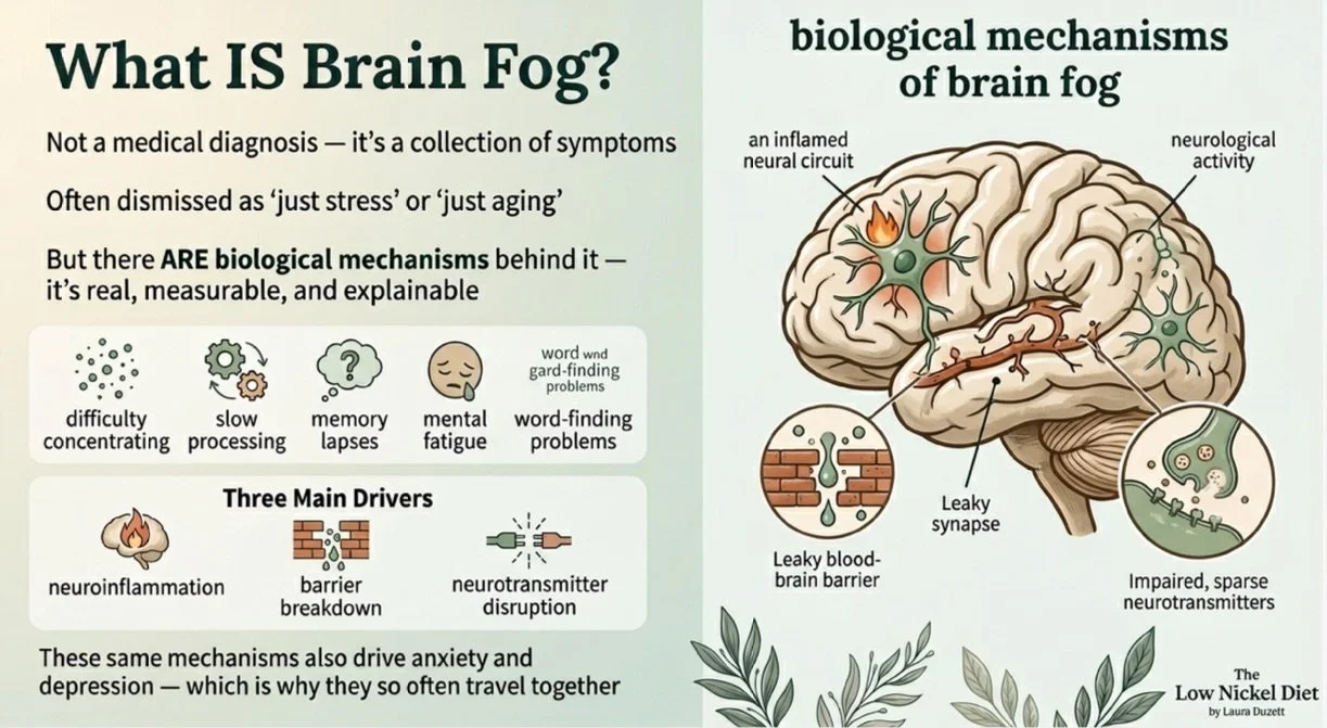 If you have systemic nickel allergy syndrome (SNAS) and brain fog, you are not imagining it. There are real, documented biological mechanisms connecting the nickel you eat to the way your brain feels. Let's walk through what the research actually says — and what you can do about it.